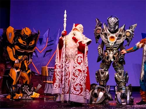 Новогодняя Кибер Робо Ёлка в Москве — это праздничное представление и современный музыкальный спектакль, в котором оживают настоящие роботы. Постановку подготовил Детский Театр Роботов из Санкт-Петербурга, известный своими технологичными шоу для всей семьи. Здесь нет анимации и всё происходит вживую, прямо на сцене, где яркие персонажи и реалистичные трансформеры увлекают детей в настоящее приключение.
