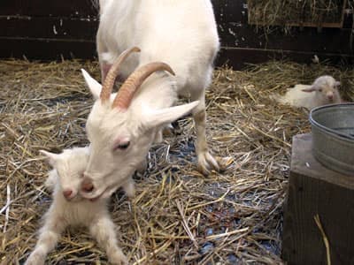 Не успело пройти и две недели, как у нас в контактном зоопарке «Жили у бабуси» опять праздник! Теперь виновницей торжества стала наша козочка Беляна. Вчера она родила на свет двух маленьких козлят. Малыши пока еще не окрепли и большую часть времени спят. Теперь в нашем зоопарке на две козочки больше.
